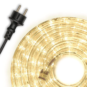 Der Lichterschlauch ist mit witterungsfestem Kunststoff ummantelt und nicht dimmbar.